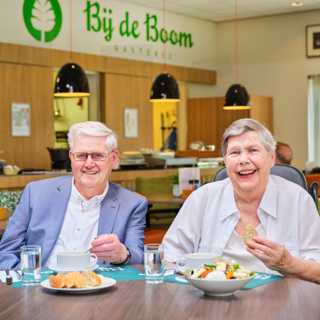 Theo en Gerard kenden elkaar uit het ziekenhuis. Theo werkte namelijk bijna 40 jaar in het Anna, waarvan de laatste 25 jaar in het magazijn. “Ik heb mijn werk altijd met heel veel plezier gedaan. Ik hou van contact met mensen.” Mede daardoor leek de Gasterij een heel goed idee. Maar het restaurant was op dat moment nog niet geopend voor niet-bewoners. Gelukkig was dat snel geregeld. Theo en Gerda mochten aanschuiven voor de dagelijkse pot.