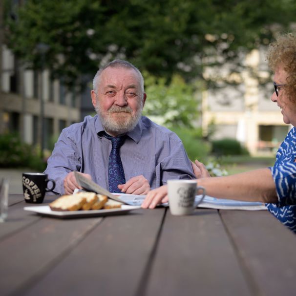 “Ik kom sinds 2020 twee dagen in de week naar de dagbehandeling bij Anna Heuvel. En dat doet me echt goed. De dag begint hier standaard met een warme begroeting: goedemorgen Toon, bakkie koffie? Dan lezen we de krant en praten we met elkaar over het nieuws. Daarna is het tijd om te sporten. Koersballen bijvoorbeeld, of badminton met ballonnen. En we doen ook oefeningen die heel belangrijk zijn als je Parkinson hebt, zoals valbreken en opstaan als je gevallen bent. In de middag krijg ik ook nog logopedie om duidelijker en toonvast te leren praten. Gelachen wordt er ook. Ik ben hier bijvoorbeeld beroemd om mijn rollator-wheelies. Ik verveel me echt geen moment.”